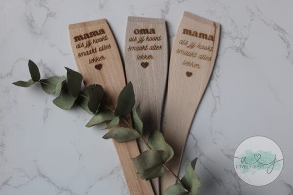 houten pollepel gegraveerd met de tekst: